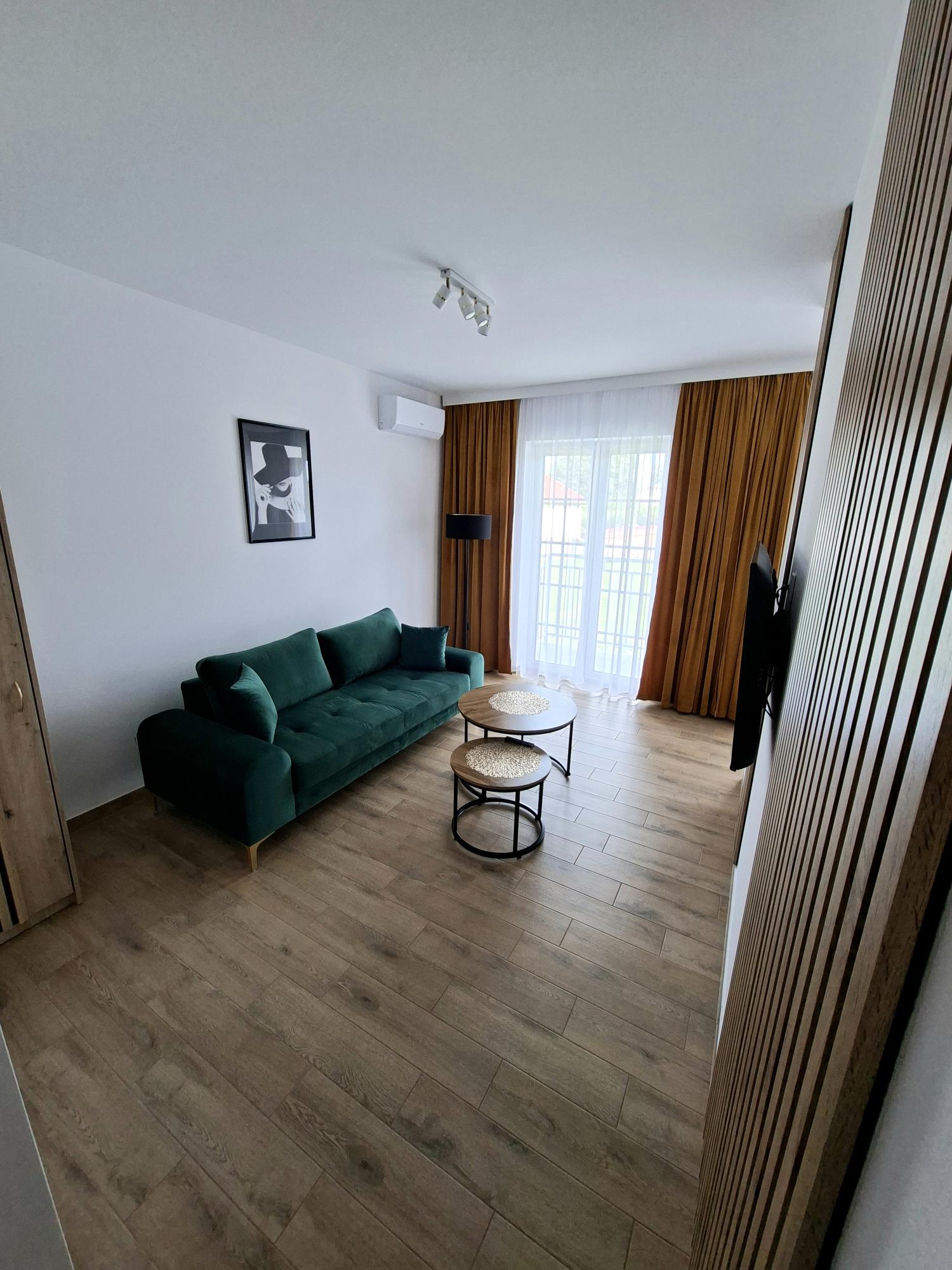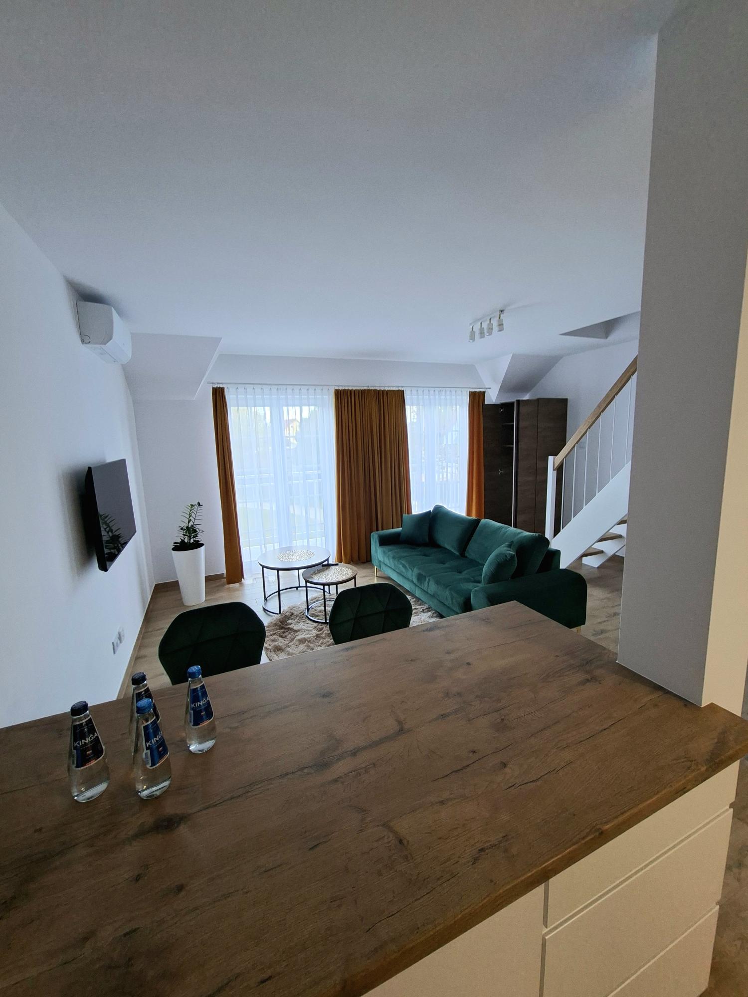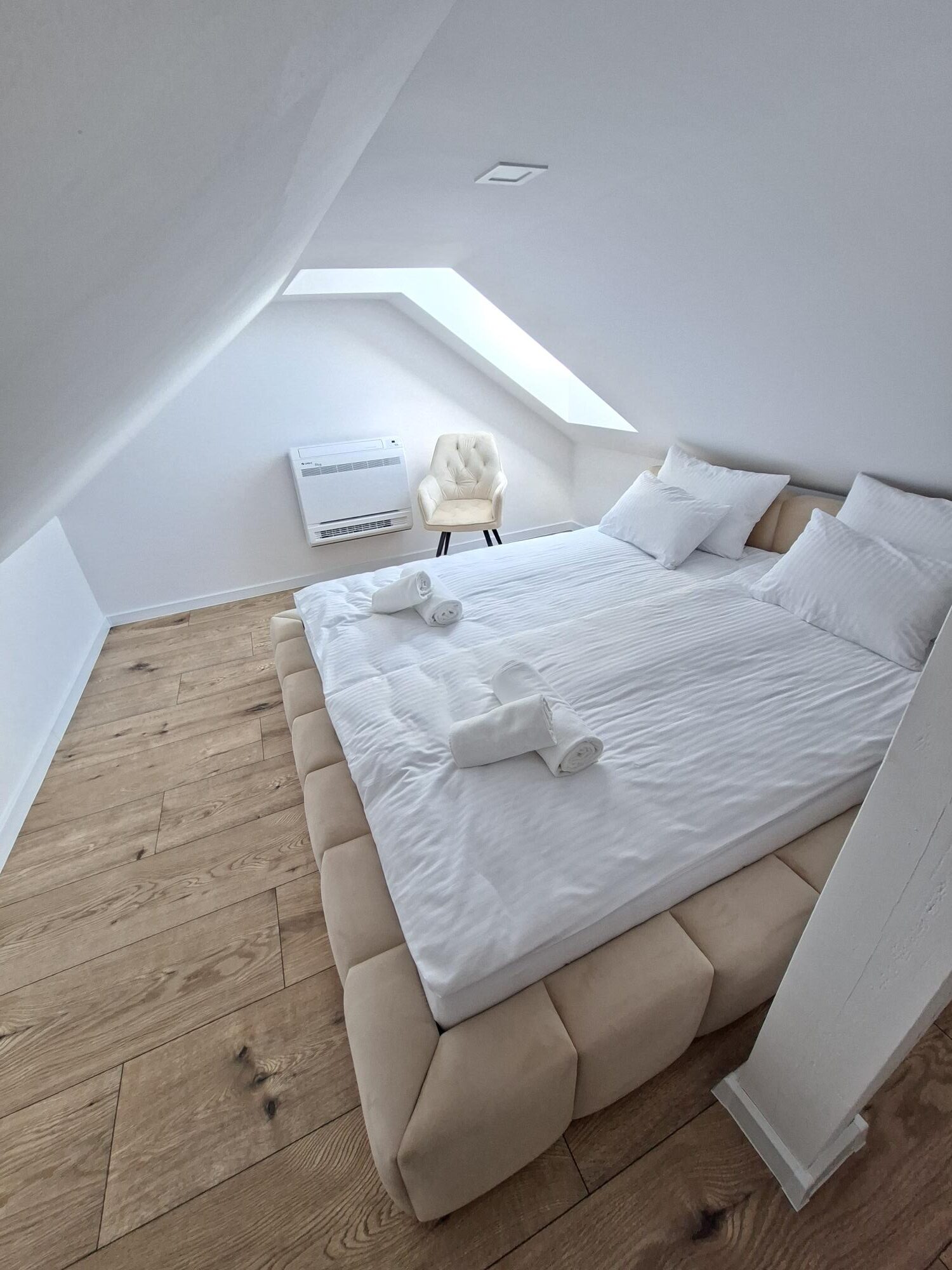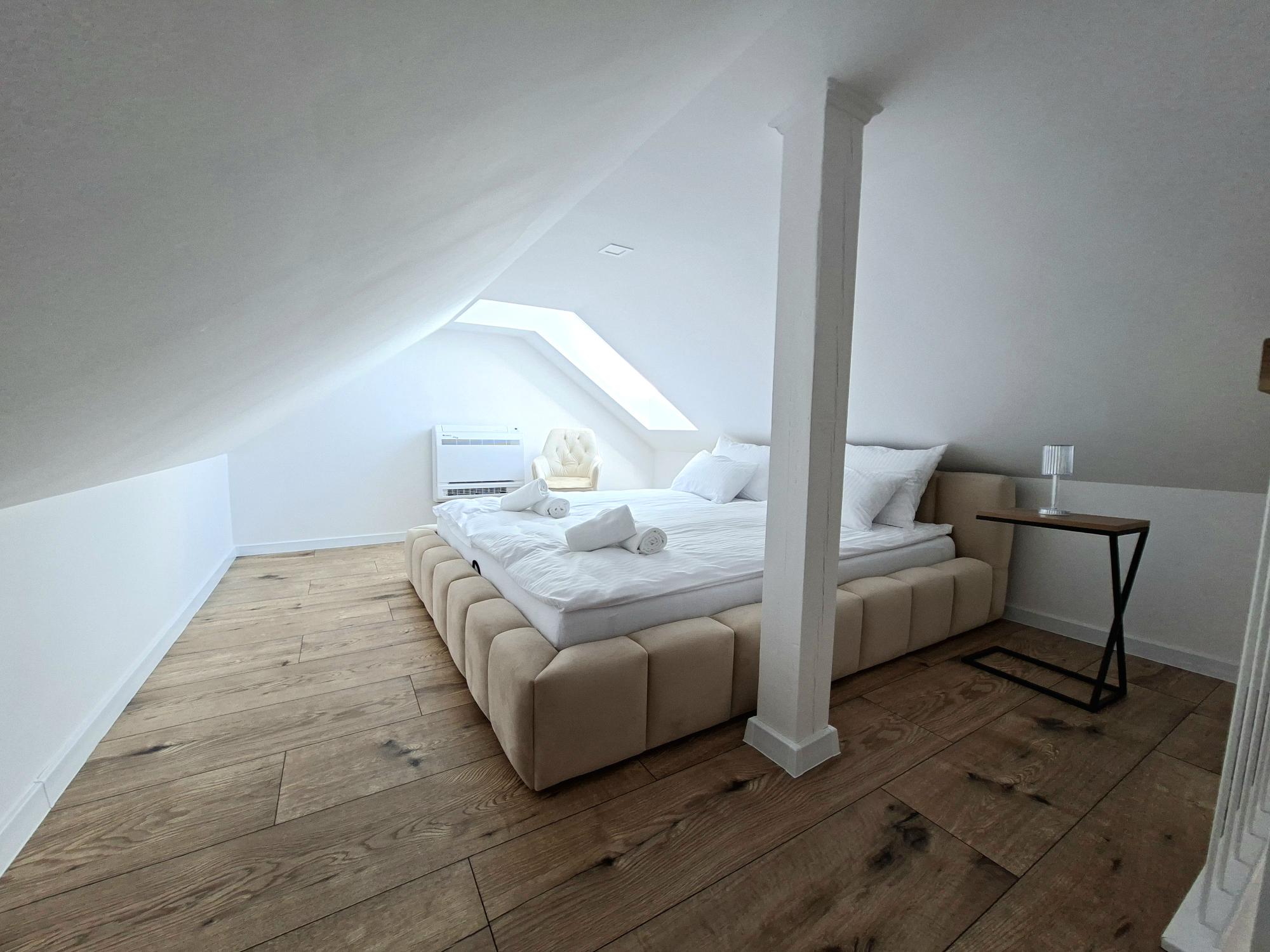 Nasze apartamenty charakteryzują się nowoczesnym wyposażeniem i eleganckim designem. Każdy apartament ma bezpośrednie wejście z garażu podziemnego, co zapewnia pełną prywatność. Wysokiej klasy meble, komfortowe łóżka oraz luksusowe łazienki z pełnym wyposażeniem gwarantują najwyższy standard pobytu.